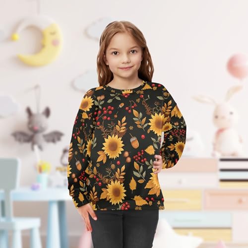 JUNZAN Sunflowers Acorns Leaves Autumn Big Girls Sweatshirt Hoodie Crewneck Outerwear for Kids Athletic 4T 5