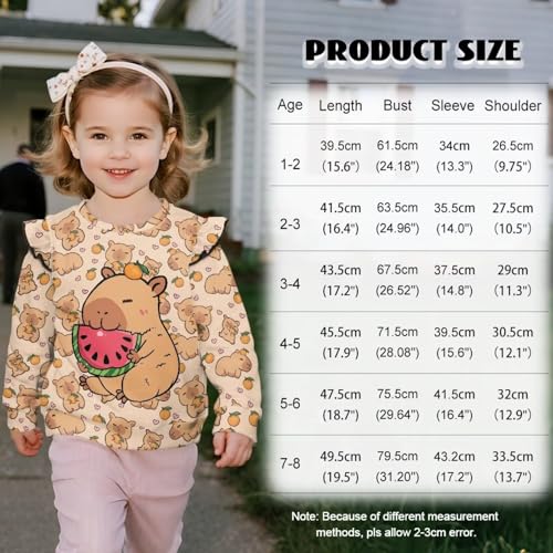Girls Long Sleeve Shirts for Kids Cute Ruffle Shoulder Casual Crew Neck Sweatshirts Pullover Tops Age 1-8 Years 3