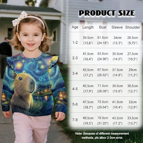 • Various Pattern:Girls fashion long sleeve shirts are very diverse in color and design,which can meet individual and multiple needs of your children,such like capybara, axolotl,highland cow,leopard print,butterfly,cool horse,dog,funny cat and so on