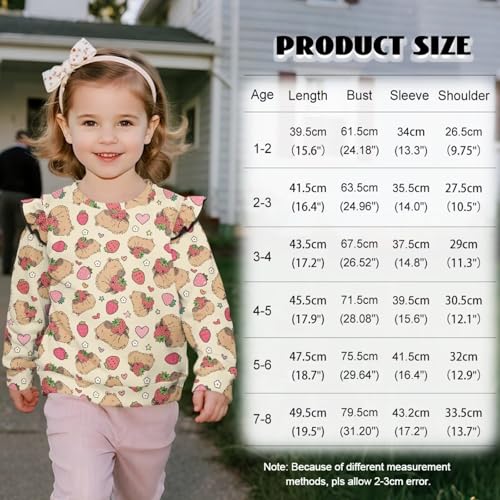 Toddler Girls Crewneck Sweatshirt Cute Ruffle Shoulder Long Sleeve Pullover Casual Shirts Top Kid Fall Clothes 1-8Y 3