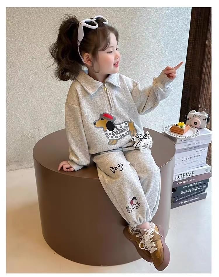 HOT ! New for 2025 Girls Autumn 2 Piece Outfits Half Zip Lapel Collar Long Sleeve Sweatshirt Sweatpant Tracksuit Sets