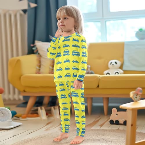 Pajama Sets Long Sleeve Blue Cars on Yellow Soft Comfy Sleepwear 2 Piece PJS 3-8T 2