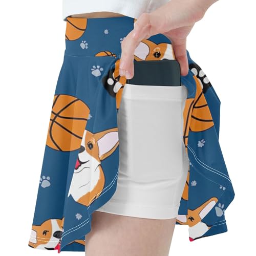 Preppy Girls' Shorts Athletic Skorts Toddlers Tennis Skirts Teen Skirt Happy Corgi Dogs Blue 4t 7