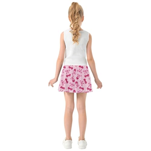 Girls Skorts High Waist Athletic Skirts with Shorts Ribbon Cherry Stretchy Teens Performance Tennis 7