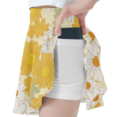 Girls Skorts Athletic Shorts Toddlers Tennis Skirts Floral School Skirt Floral Daisies Wildflowers Yellow 3t 5