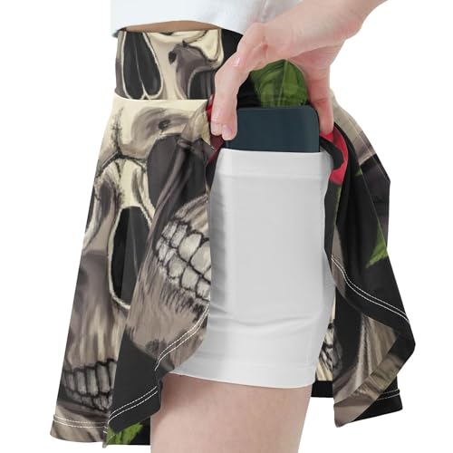 Kids Tennis Skirts Skulls Red Vintage Roses Athletic Shorts for Girls Skorts Toddler Girl Skort 4t 2