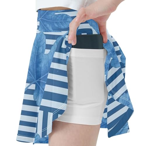 Joisal Girls' Shorts Athletic Skorts Botanical Leaves Blue Geometric Striped Tennis Skirts for Kids Children Flowy Skirt 3t 1