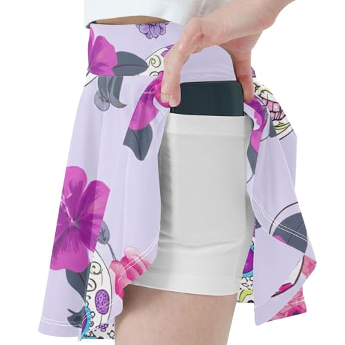 Kids Tennis Skirts Colorful Sugar Skull Floral Purple Girls Skorts Athletic Shorts Neon Flowy Skort 4t 4