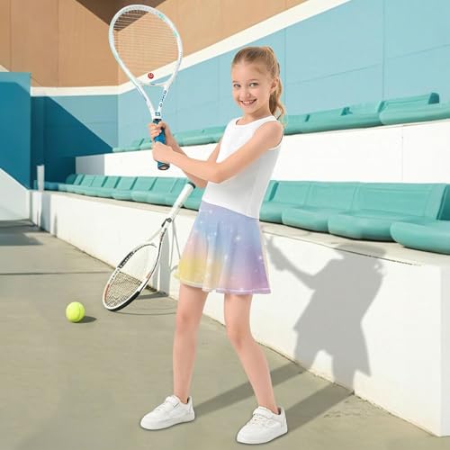 HOT ! Rainbow Tennis Skirt for Girls with Built-in Shorts Flowy Little Girls Golf Skort Sports Skirts with Pockets