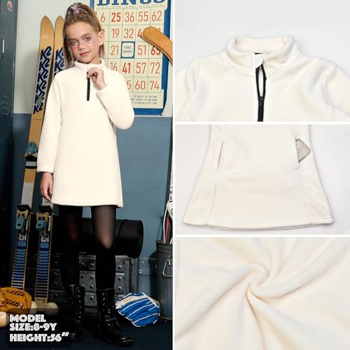Mirawise Girls Fleece Dress 1/3 Zip Polar Long Sleeve Sweatshirt Stand Collar Fall Winter Pullover Dress with Pockets 4