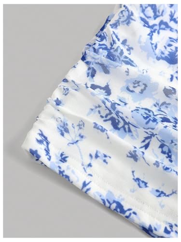 • Feature: Floral print, mesh, sleeveless, ruched bust, cami mini dress, summer bodycon dress