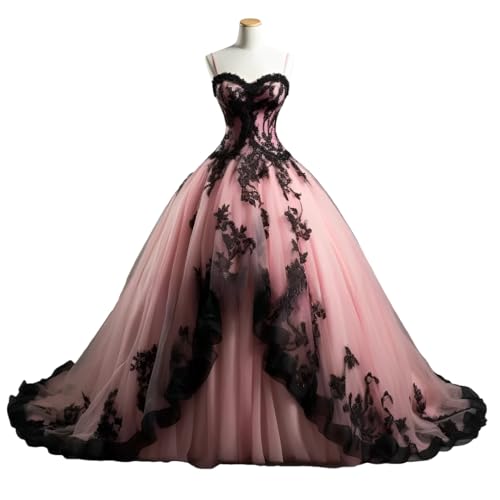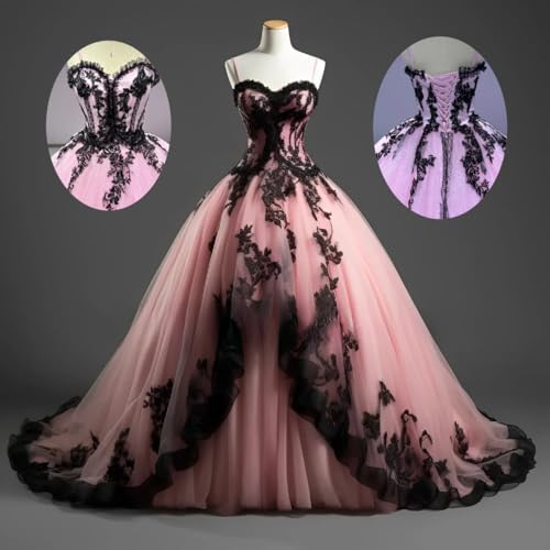 More information about Mauuwy Gothic Quinceanera Dresses with Black Lace Appliques Sweet 16 Prom Dresses Tiered Wedding Dresses for Bride