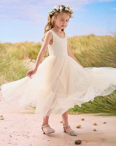 Flower Girl Dress Lace/Tulle Boho Toddler Dresses Ruffle Girl Dress for Wedding Garden Party Communion Beach 6