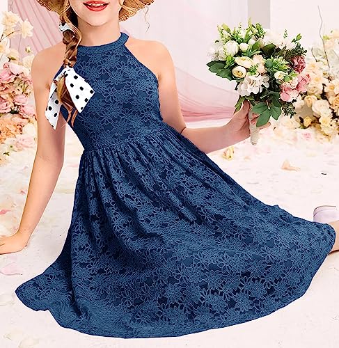 HOSIKA Girls Halter Neck Sleeveless Elegant Floral Lace A-line Flared Swing Party Dress for 6-12 Years Kid 6