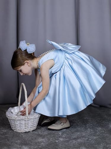 • EXQUISITE DESIGN: Flower Girls Dress Features a Tea-Length Pearls Satin and a O-Neck Backless Design, Soft and Glossy Satin, the A-line makes the Hemline Look Large and more Like a Princess Pageant Dress. And the Cute Bow on the Back Adds to the Gorgeousness of the Dress Makes the Dress Full of Design and Fashion Sense.