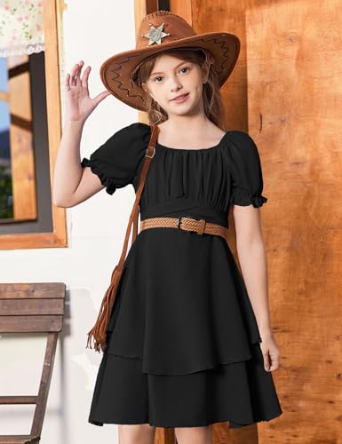 Arshiner Girls Dresses Summer Short Sleeve Off Shoulder Ruffle Tiered Layer Party Dress 6