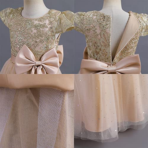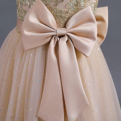 • Flower Girls Long Sequin Lace Bowknot Wedding Party Dress: Little big girls embroidery glitter sequins lace flower wedding bridesmaid pageant formal party long maxi dress, sweet junior princess first communion birthday dance prom ball gown floor length flare a-line puffy tulle ball dresses, elegant and gorgeous summer shiny cap sleeves bowknot dresses for 5-14 year-old baby kids toddler girl.