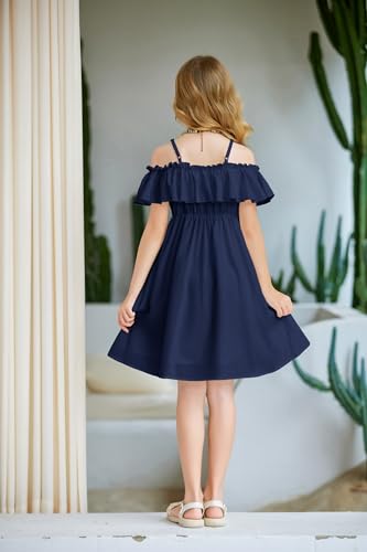 Arshiner Girls Summer Floral Ruffle Sundress Cold Shoulder Casual Holiday Dresses 5