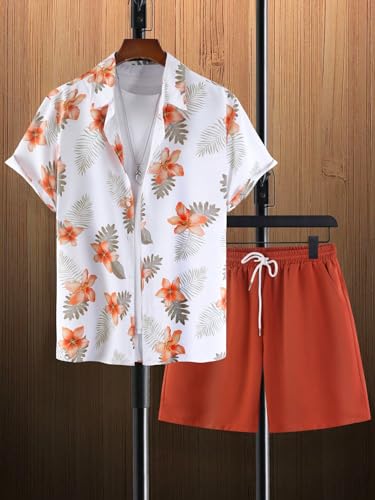 HOT ! GORGLITTER Men's Hawaiian Matching Set Summer Beach 2 Piece Outfits Flower Button Down Shirts and Shorts Set