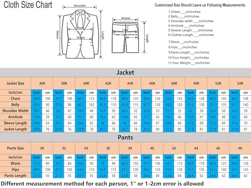 • 44-Jacket,38-Pants:Shoulder=20.5''/52cm,Chest=48.4''/123cm,Waist=40.2''/102cm,Hips=47.3''/120cm,Jacket Length=30.7''/78cm,Pants Length=22.8''/58cm