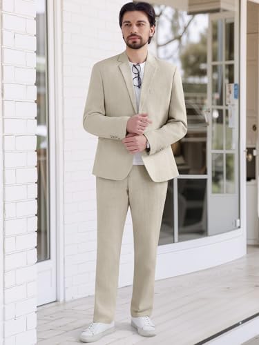MAGE MALE Men's 2 Piece Linen Suits Set Casual Lightweight Blazer Jacket and Pants for Wedding Business Prom 1