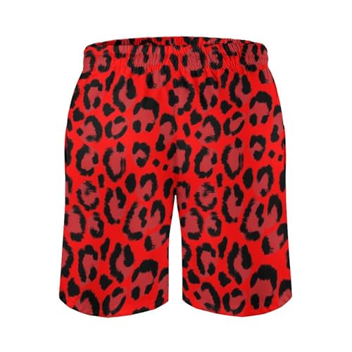 HOT ! Leopard Red Print Mens Swim Trunks, Quick Dry Swim Shorts with Mesh Lining Swimwear Bathing Suits