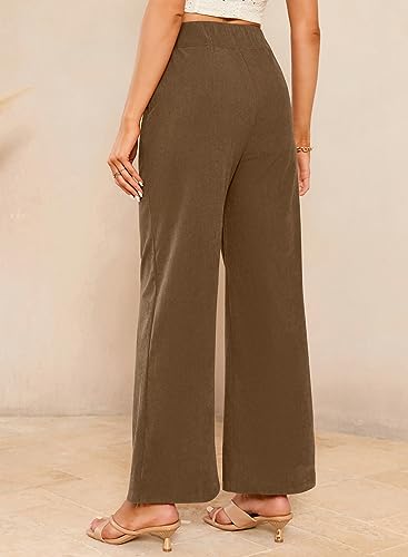 Sidefeel Corduroy Pants for Women 2025 Casual High Waisted Double Buttoned Stretchy Loose Fit Wide Leg Pants with Pockets 4