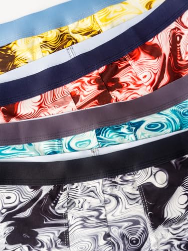 • Vibrant Designs: This pack includes 5 boxer briefs featuring eye-catching swirl patterns in shades of red, yellow, teal, black, and blue.