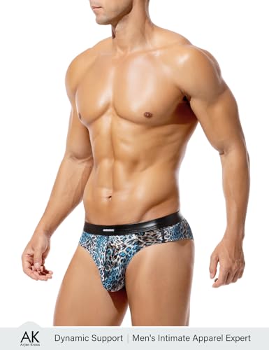 HOT ! Arjen Kroos Men's Sexy Leopard Print Underwear Faux Leather Waistband Soft Velvet-Like Briefs with 3D Pouch