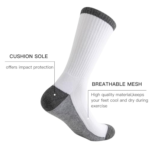 • BREATHABILITY & ARCH SUPPORT: These men's crew socks feature zoned mesh for ventilation and arch compression to enhance support and stability while reducing foot fatigue. Mesh zones help socks breathe, keep feet cool and dry, and transfer moisture from the skin to surface of socks for better evaporation.