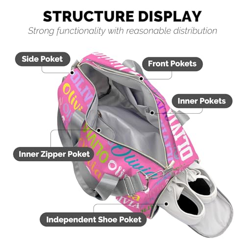 Pink Personalized Duffel Bag with Name Next Custom Travel Bag for Woman Men Sports Gym Dance Bags Wet Dry Pockets Shoe Compartment Overnight Weekend Bag 5