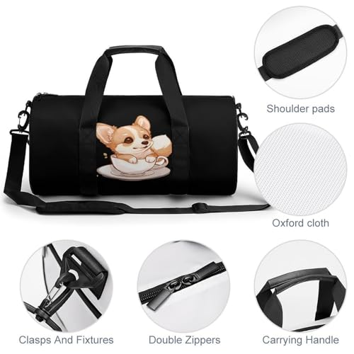 Corgi Corgffee Cute Sports Gym Bag Travel Duffel Workout Bag with Adjustable Strap 6