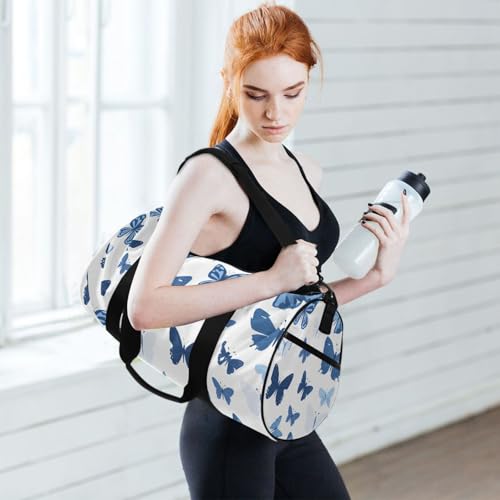 HOT ! Butterfly Blue Sports Duffel Bag Large Barrel Gym Bag with Full Print Design, Adjustable Strap Spacious Storage for Workout Training Outdoor Activities and Weekend Trips