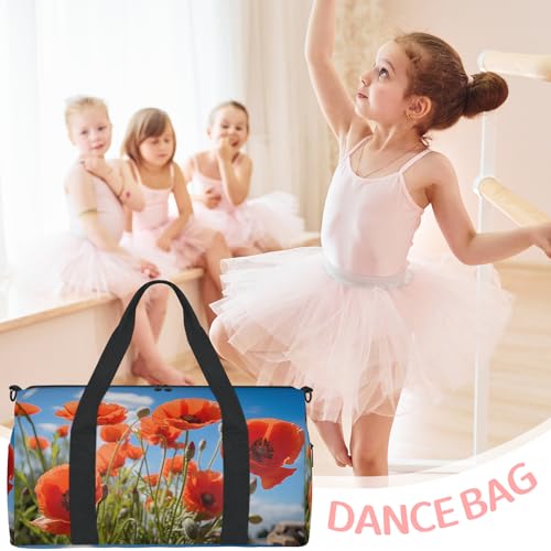 Red Poppy Pattern Sports Duffle Bag for Women Men Waterproof Overnight Weekender Bag with Adjustable Strap Travel Tote Bags for Beach Yoga Work Dance Swim 6