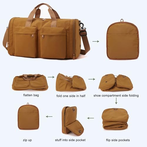 • 【Multi-compartment】This foldable travel duffle bag for men with 1 spacious main compartment with dry/wet pocket and 2 small pocket, 1 side compartment, 1 shoe warehouse, 2 front pocket and 1 back anti-theft pockets. Multiple compartments allow for classified storage and quick access, dedicated shoe compartment with ventilation system can separate your shoes and also can as dirty laundry compartment.