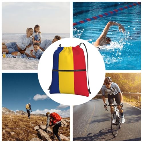 Flag of Romania Drawstring Backpack Patriotic zipper Drawstring Bag for Men Women Sport Yoga Travel Gym 5