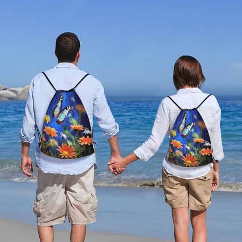 Drawstring Bag Lightweight Small Gym Bag for Women Butterfly and Flower Soccer Backpack for Sports Travel 7