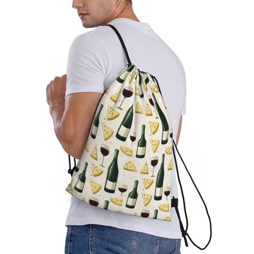 Drawstring Backpack - Red Wine Cheese Print Sports Gym Sackpack String Bag For Women Men, Lightweight Draw String Back Bag For Workout Travel 5