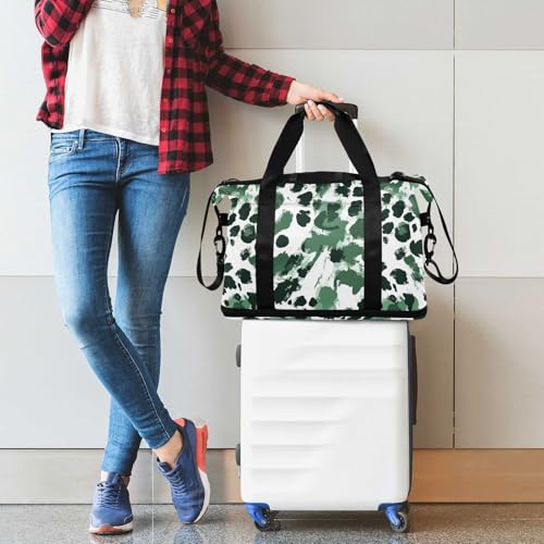 ALAZA Green White Leopard Spots Gym Bag Sports Duffel Bag with Shoes Compartment, Overnight Weekender Travel Tote Bag for Women Men Trip College 4