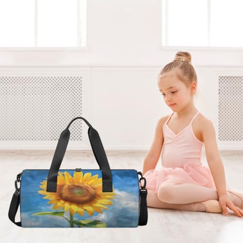 Sunflower Vintage Round Barrel Sports Fitness Bag, Travel Luggage Bag, Reusable Handbag, Suitable For Men and Women 4
