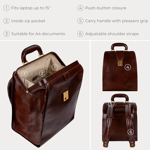 • ✔️ MADE TO LAST – the leather bag is handmade in Italy using craftsmanship secrets passed down through generations. Reliable hardware, tear-resistant lining, YKK zippers – dedication and ATTENTION TO DETAIL is what ensures incredible look of a quality leather accessory.
