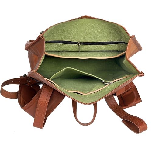 cuero Handmade Genuine Vintage Leather Backpack for Men Camping Travel Rucksack Bag Full Grain Goat Leather Casual Laptop Work Backpack For Men and Women Roll Top Backpack Brown 6