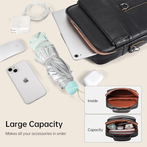 • 【MULTI POCKETS STORAGE】 This crossbody leather bag has 4 pockets meet your different needs, 1 main compartment to store your laptop or iPad, 1 outer zipper pocket + 1 magnetic closure pocket for easy-access to daily accessories, and 1 anti-theft inner pocket keeps your valuables (passport, cards, cash) safe from pickpockets.