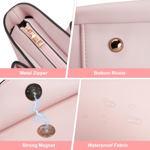 MOSISO Laptop Tote Bag for Women, 15.6 inch PU Leather Work Laptop Bag with Flap Buckle & Clutch Purse, Large Capacity Computer Shoulder Handbag for Casual Business Travel, Pink 4