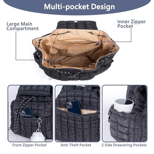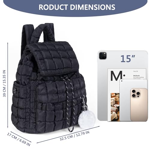 More information about Quilted Puffer Backpack for Women: Large Lightweight Soft Purse Backpacks for Travel Daypack Hiking Gym Sports School College - Cute Trendy Luxury Drawstring Laptop Backpack (Black)