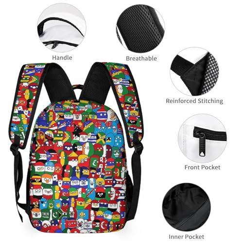 Polandball Countryball Backpack Large Capacity Travel Bag Laptop Bag Lightweight Casual Daypack For Women Men 3