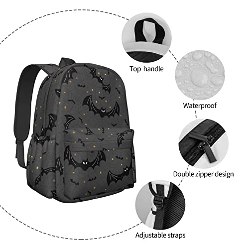 HOT ! Black Bats Spider Web Large Capacity Backpack Lightweight Personalized Laptop Bag Tablet Travel School Bag with Multiple Pockets