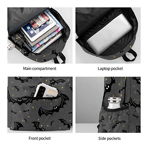 Black Bats Spider Web Large Capacity Backpack Lightweight Personalized Laptop Bag Tablet Travel School Bag with Multiple Pockets 6