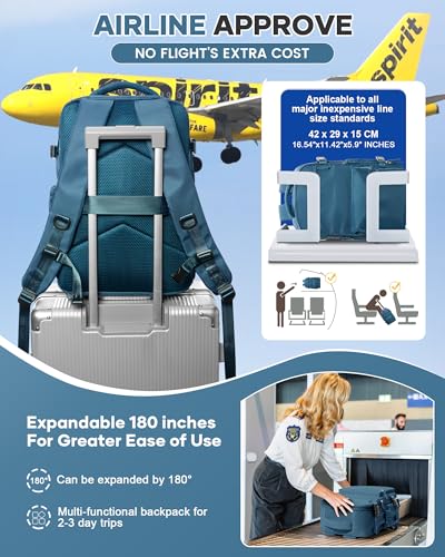 Vacuum Travel Backpack for Women, Personal Item Carry on Vacpack Backpacks Flight Approved 18x14x8 inches for Men,Laptop Waterproof Work Compression bags Casual Daypack,PeacockBlue 4