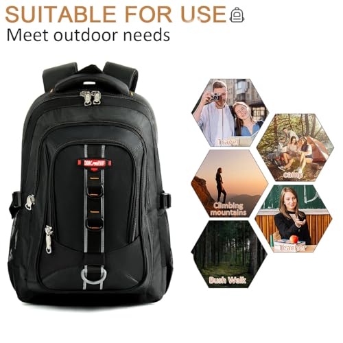• ✅【Comfortable Carry on Bag】: With a comfortable padded back design and thick and soft multi panel ventilated pads, the big backpack gives you great back support. Breathable and adjustable shoulder straps relieve shoulder pressure to reduce discomfort in long packs. The backpack for men and women will be a good partner for travel. THIS ITEM IS NOT INTENDED FOR USE BY CHILDREN 12 AND UNDER